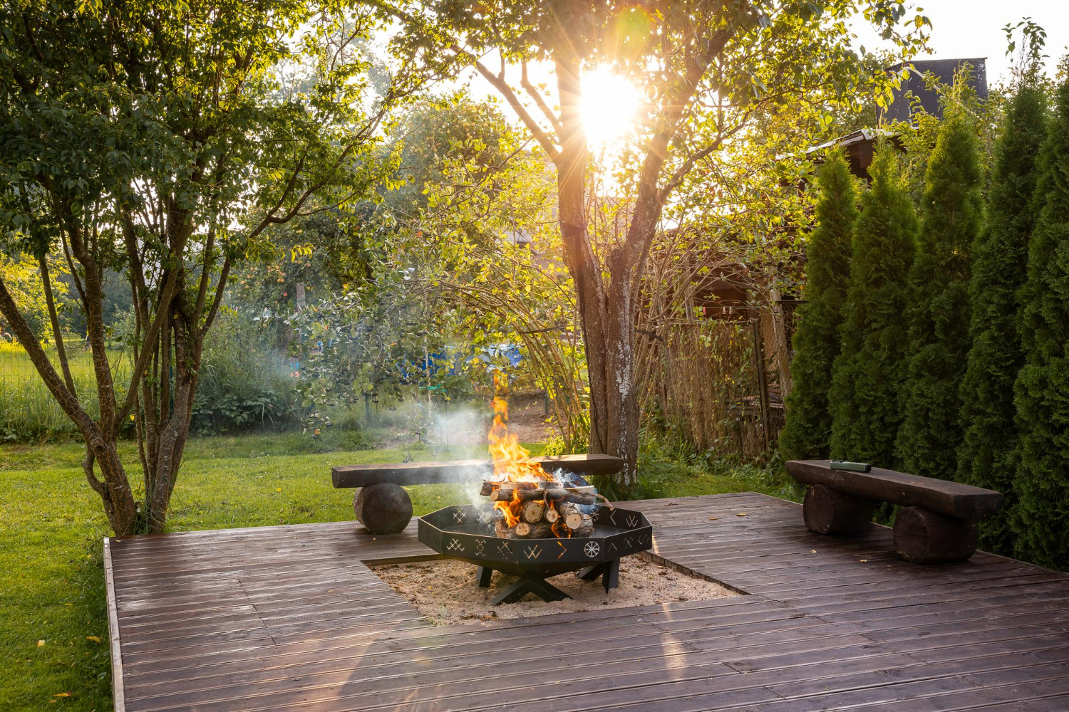 – Placement: Position fire features like fire pits in areas where people gather, ensuring they’re both inviting and safe. Place water features where they can catch natural light and reflect scenic views.